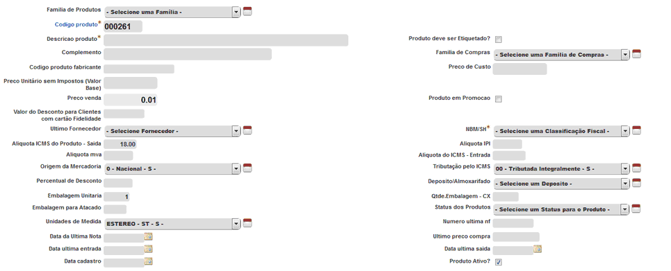 No menu principal, selecione: Estoque -> Tabelas de Estoque -> produto Simplificado.